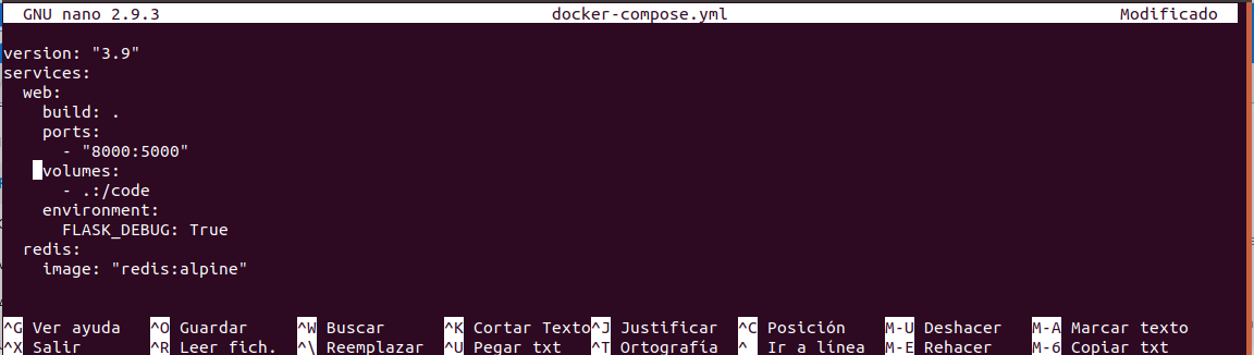 Nota: Este archivo docker-compose.yml crea dos servicios: web y redis.