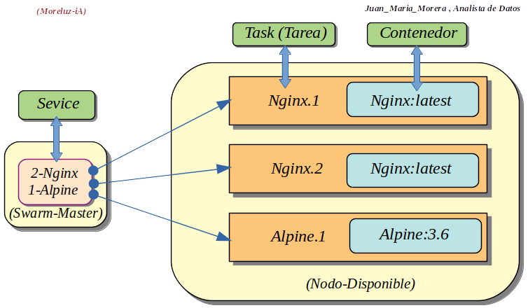 Nota: Los contenedores Docker se lanzan por medio de Servicios, tenemos dos tipos de Servicios: (servicios globales) y (servicios replicados) al crear un Servicios, se iniciar tareas la cual se ejecuta para realiza el trabajo, por lo tanto podemos decir que servicio es una descripción de una tarea que queremos ejecutar.
