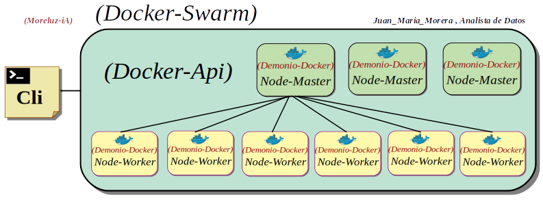 Nota: (Cada Nodo es un (Demonio-Docker) y interactuá mediante la (Api-Docker) una descripción de los Nodos es una Instancia del Motor-Docker.)