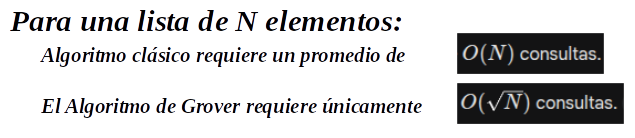 • Propósito: Buscar un elemento específico en una lista o base de datos no ordenada con una ventaja cuadrática sobre los algoritmos clásicos.