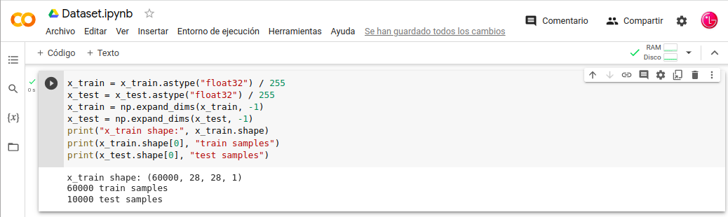 -. Damos parámetros a los datos de entrada, cargamos los datos los dividimos entre Entrenamiento “train” y Prueba “test”. Aquí es donde usamos un Array-Multidimensional de NumPy como estructura de datos.