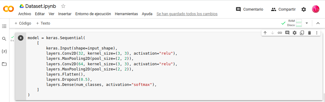 - layers.Dropout(0.5), La layers-Dropout establece aleatoriamente las unidades de entrada en 0 con una frecuencia de rate en cada paso durante el tiempo de entrenamiento, lo que ayuda a evitar el sobreajuste.
