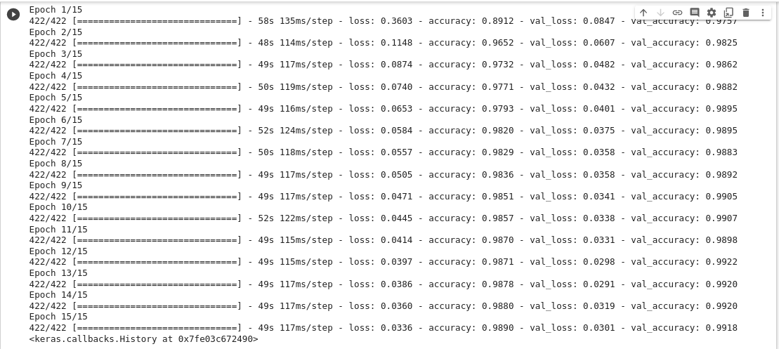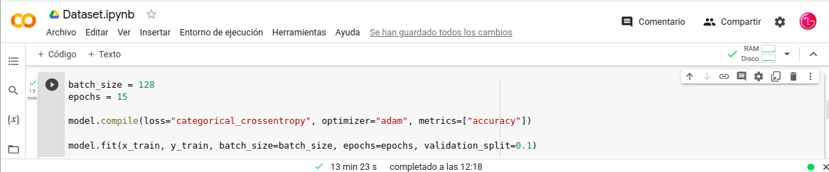Nota: Nuestro Google-Colaboratory le a costado 13min 23s ejecutar el entrenamiento y a continuación unas aclaraciones sobre el entrenamiento que acabamos de realizar.