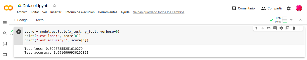 En esta Red- Neuronal-Artificial del tipo ConvNet CNN, se han seguido todos los procesos desde la preparación del Dataset de entrenamiento posteriormente lanzamos el constructor del Modelo-Secuencial seguimos entrenando el Modelo y por ultimo evaluamos el Modelo que acabamos de entrenar.