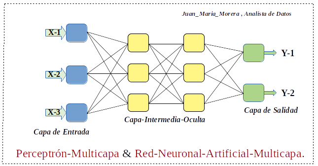 -. Perceptron-Multilayer & Red-Neuronal-Artificial-Multicapa, es una red neuronal capaz de manejar datos separables tanto linealmente como no linealmente. Pertenece a una clase de redes neuronales conocidas como redes neuronales de avance, que conectan las neuronas en una capa con la siguiente capa de manera directa sin bucles.
