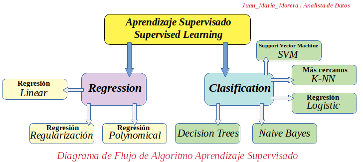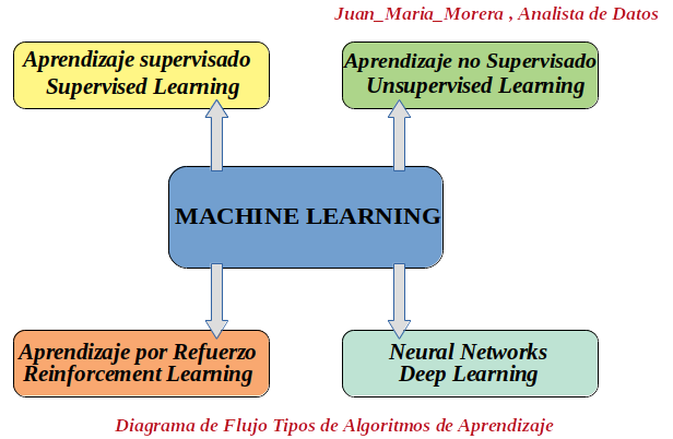 -. Antes de enumerar los algoritmos un pequeño repaso los tipos, con un diagrama de flujo por aquello de que una imagen vale mas que mil palabras omitiere la parte de Neuronal Networks que lo haré en la sección Deep Learning