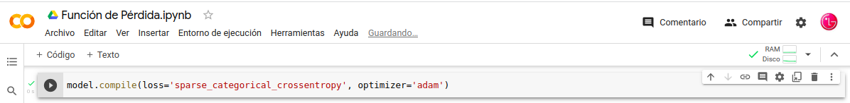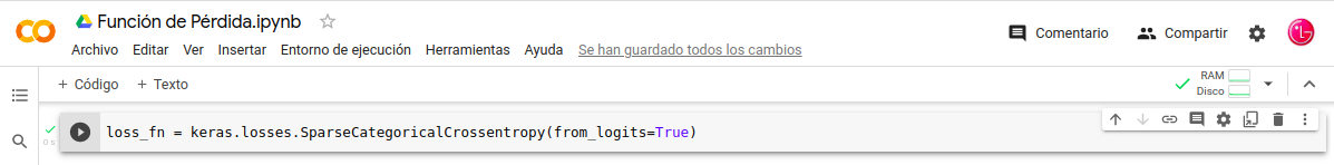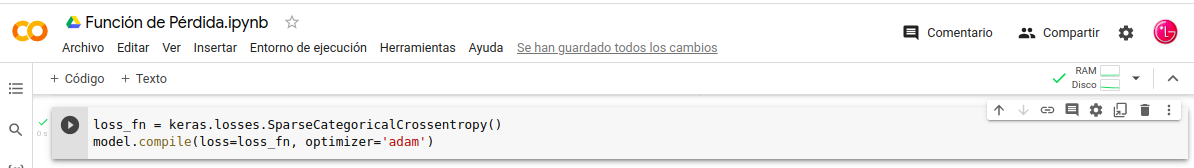• Todas las Pérdidas también se proporcionan como Identificadores de Funciones keras.losses.sparse_categorical_crossentropy.