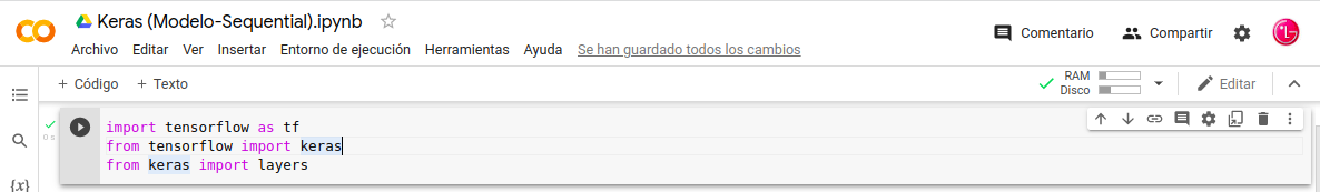 Nota: Keras es una API de deep-Learning escrita en Python, que se ejecuta sobre la plataforma de Machine-Learning TensorFlow de hecho se ha convertido en la API oficial de TensorFlow.