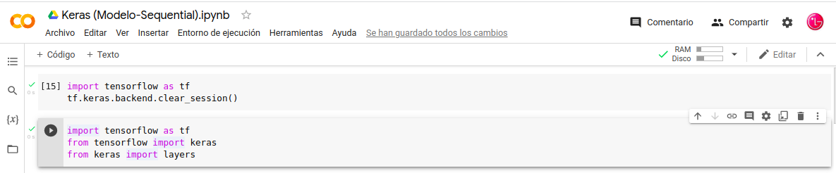 Nota: para evitar digamos “Cosas-Raras” con nuestro Google-Colaboratory, como buenas-practicas ejecutar un reseteo tensorflow-Keras.