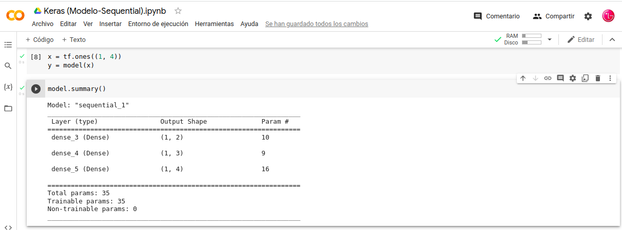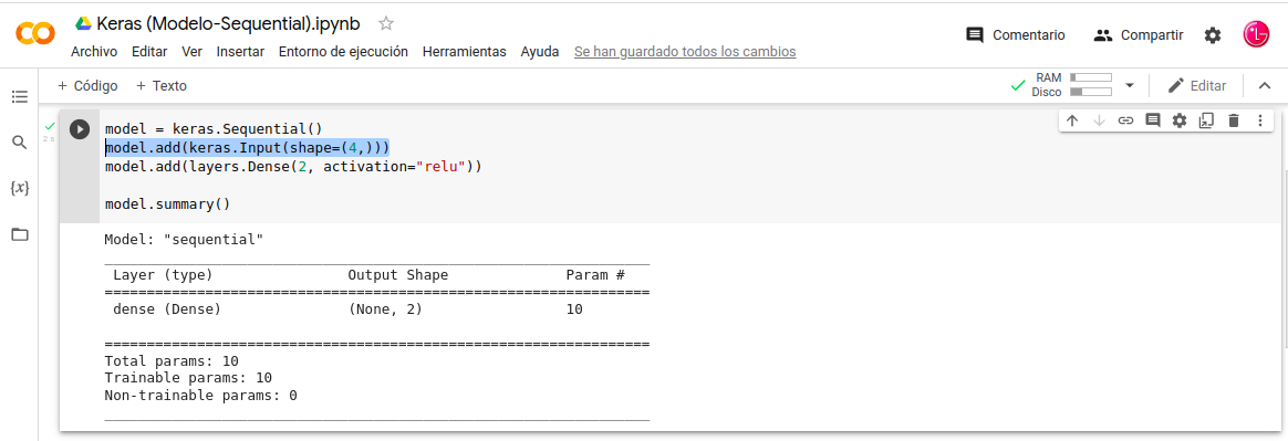-. Los Modelo-Secuencial en versión Incremental creados con una forma de Entrada-Predefinida como esta siempre tienen pesos, por lo que hemos explicado anteriormente, siempre tienen una forma de salida definida. Es recomendable especificar siempre la forma de entrada de un Modelo-Secuencial por adelantado