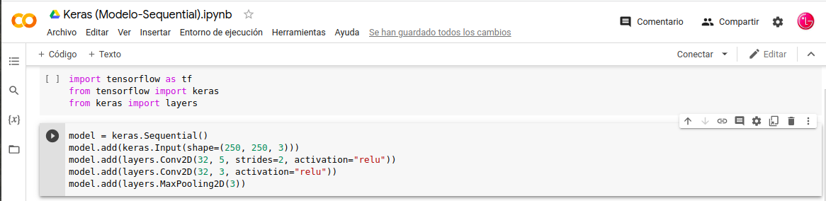 Tenemos una exposición amplia del Modelo-Secuencial, todo lo necesaria para poder usarlo y que mejo forma para llevarlo a cabo que usar la herramienta Google Collaboratory “Colab” , es un servicio gratuito en la nube alojado por el propio Google para fomentar la investigación en Machine Learning.