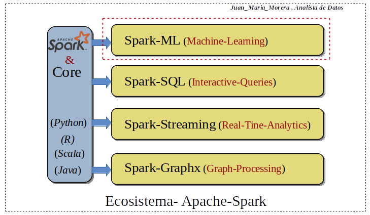 Nota: (Spark-ML & (Framework) es la biblioteca de aprendizaje automático (ML) de Spark. Su objetivo facilitar que el aprendizaje automático sea escalable y fácil de usar).