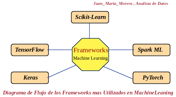 - Enumeramos algunos Franeworks pero hay muchos mas : (TensorFlow) . (Keras) , (Scikit-learn) , (PyTorch) , (Spark ML) .